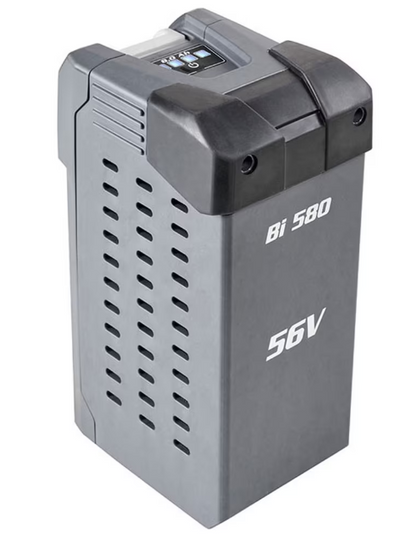 Batteria a ioni di Litio Efco Bi 580 8.0Ah 56 Volt a ricarica rapida per l'uso professionale, che offre un'elevata capacità e una lunga autonomia. Le celle ad alta potenza garantiscono un'erogazione di potenza continua in applicazioni impegnative e uso intensivo. Presenta un eccellente raffreddamento attivo anche durante la ricarica rapida e un intuitivo indicatore di carica a 4 LED.