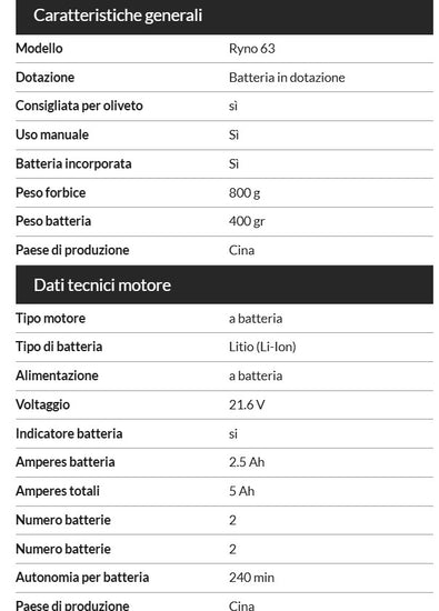 FORBICE BATTERIA RYNO63 CASTELLARI TAGLIO 37MM CON 2 BATTERIA DA 21.6 V 2.5 AH