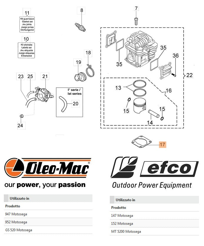 Guarnizione cilindro ricambio per motosega GS520 Oleomac
