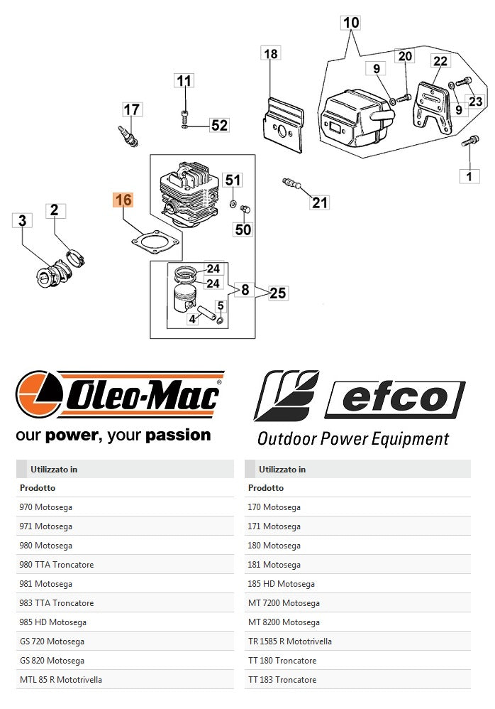 Guarnizione ricambio per motosega Oleomac 971-972-GS720