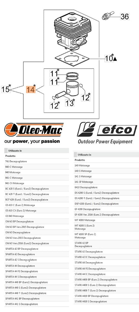 Kit pistone D.40/10 2SE ricambio motosega 940 Oleomac 50120034A