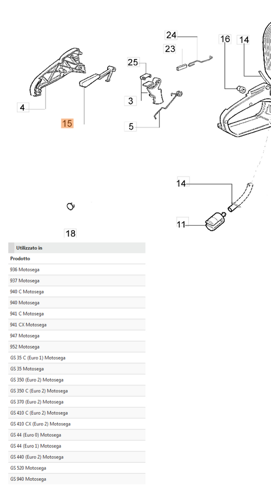 LEVA FERMO ACCELERATORE MOTOSEGA S520 OLEOMAC CON CODICE 50050046AR