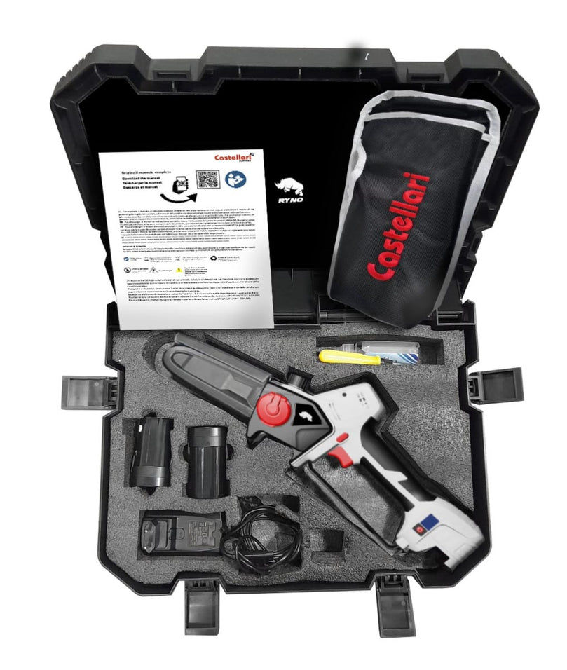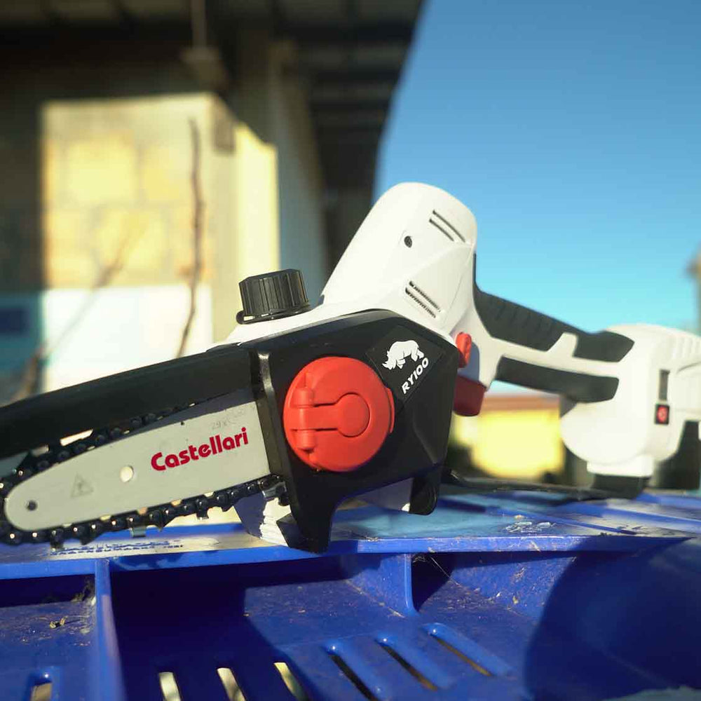 Scopri il potatore elettrico RY100, il compagno ideale per una potatura senza sforzo e dalla precisione impareggiabile. Dotato di una batteria al litio e un motore da 500W, questo potatore ti permette di tagliare rami fino a 80 mm con facilità e precisione. La lubrificazione automatica mantiene la catena sempre efficiente, mentre la barra carving agevola la potatura anche nelle zone più fitte della chioma. Grazie al pratico sportello, puoi accedere direttamente al vano motore per una pulizia veloce e senza complicazioni. E con due batterie incluse, insieme al carica batterie, fodero, cacciavite e lima, avrai tutto ciò di cui hai bisogno per affrontare qualsiasi lavoro di potatura con facilità.
