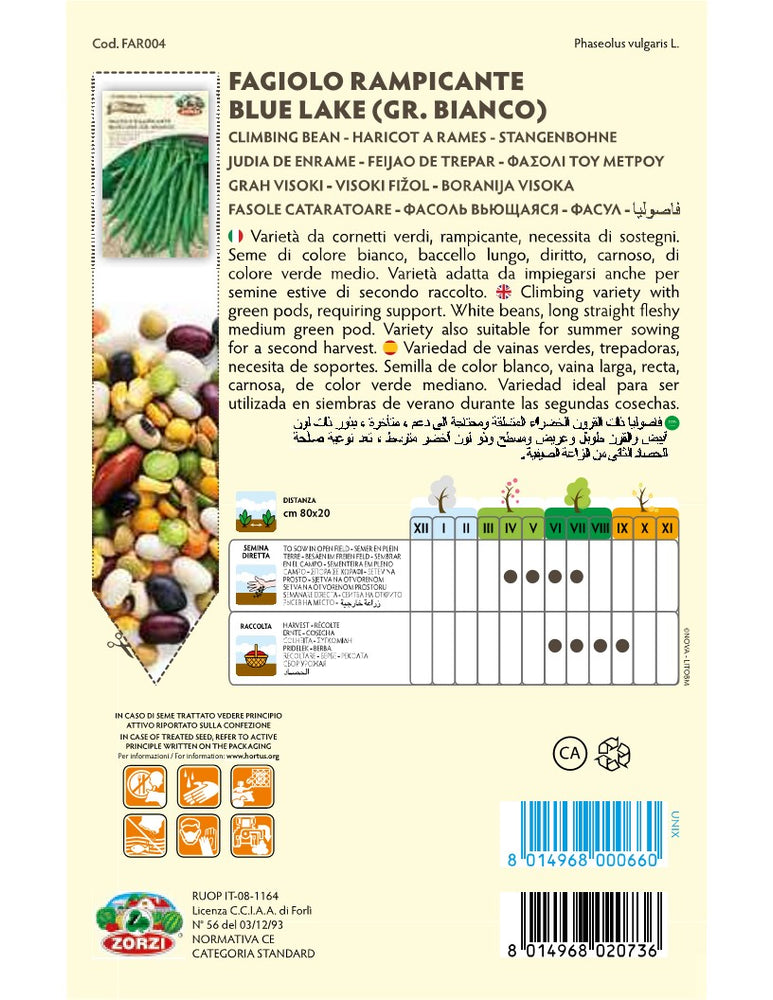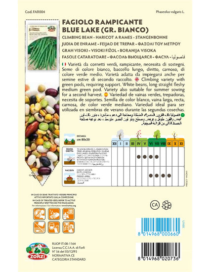 SEMI FAGIOLO RAMPICANTE BLUE LAKE (BIANCO GRANO) ZORZI GR.65SEMI FAGIOLO RAMPICANTE BLUE LAKE (BIANCO GRANO) ZORZI GR.65