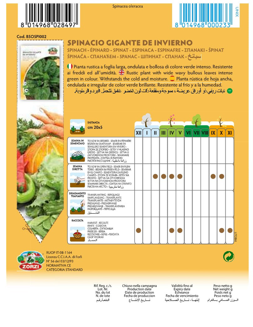SEMI SPINACIO GIGANTE D'INVERNO ZORZI Lo spinacio che matura molto presto e produce un fogliame diritto e abbastanza largo con delle caratteristiche eccellenti. Il fogliame...
