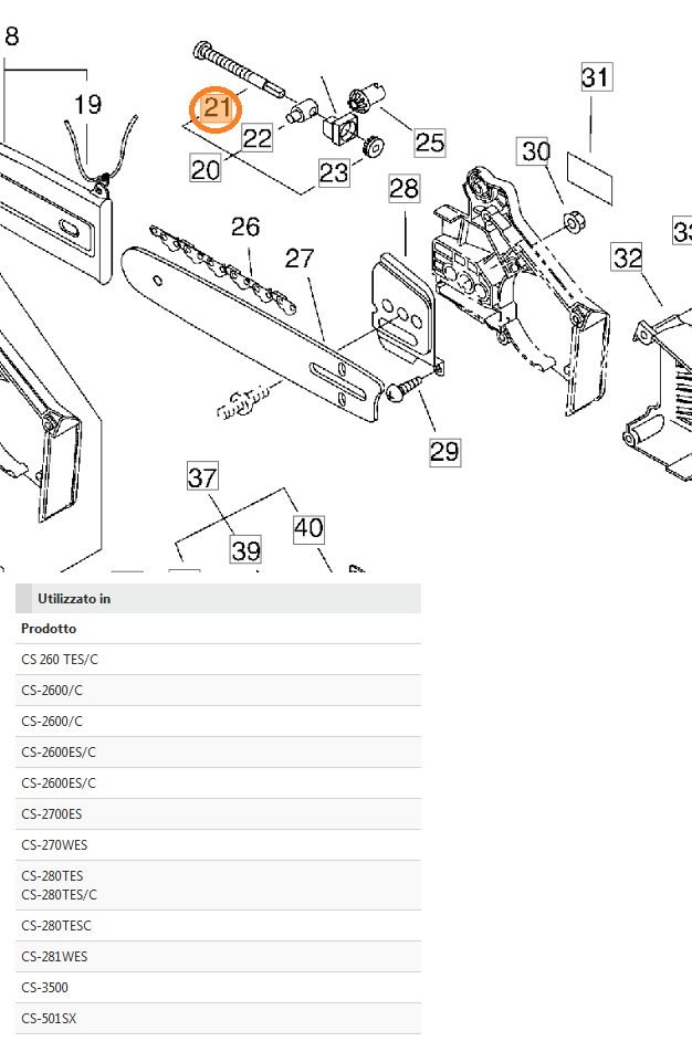 TENDICATENA VITE RICAMBIO MOTOSEGA 280TS/280TCS/501SX SHINDAIWA ECRV203000021