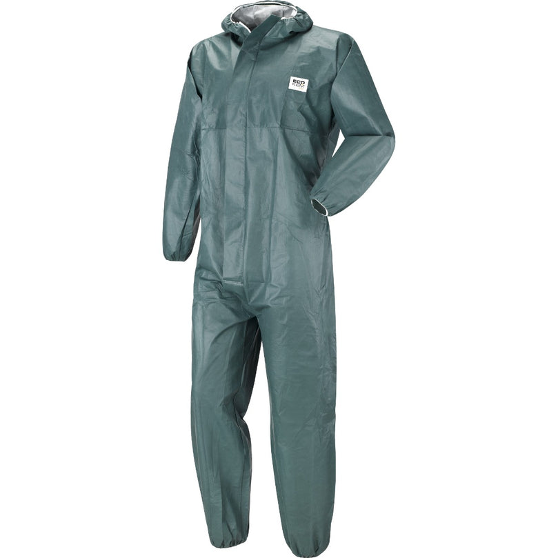 TUTA ECOKEM PESANTE VERDE Tessuto-non tessuto in polipropilene ricoperto da un film microporoso di polietilene Materiale ipoallergenico Peso tessuto 63 g mq Superficie microporosa Cappuccio...